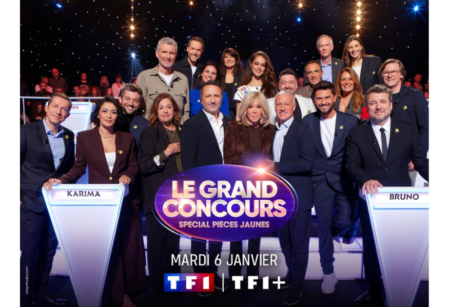Nouvelle soirée solidaire avec « Le Grand Concours » Spécial Pièces Jaunes, présentée par Arthur, en présence de Madame Brigitte Macron, Présidente de la Fondation des Hôpitaux, Monsieur Didier Deschamps parrain de l’opération Pièces Jaunes accompagnés de Madame Anne Barrère, Vice-Présidente de la Fondation des Hôpitaux.