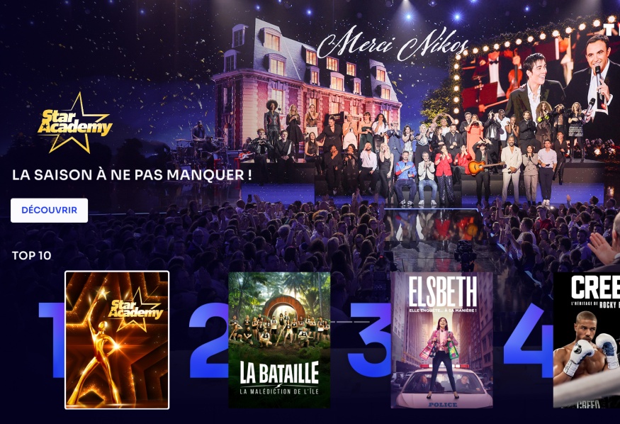 - 500 films à chaque instant, 400 séries dans tous les genres (drama, comédie, thriller, romance, K-dramas) comme Elsbeth ou Grey’s Anatomy, et des feuilletons quotidiens cultes (Plus Belle la Vie, Ici tout commence, Demain nous appartient).